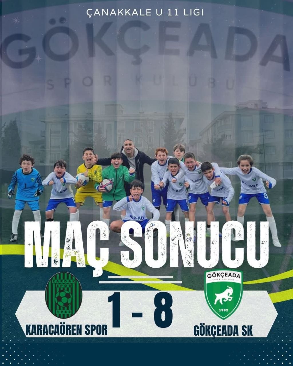 Gökçeada'nın genç futbolcuları sezonun ikinci deplasmanında Yıkapark Karacaören Spor Kulübü'nü 8-1 mağlup etti.