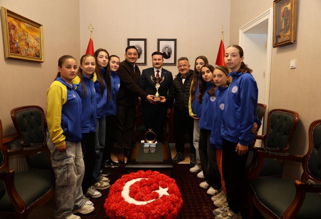 Çanakkale il birincisi olan Gökçeada Ortaokulu Kız Futsal Takımı, Kaymakam Osman Acar tarafından makamında ağırlandı.